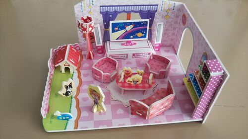 『つくろう! ドールハウス お部屋 リビングルーム』 (Seria) セリアのおもちゃコーナーで売っているペーパークラフトです。組み立ては、せいぜい15分くらいでしょうか? ハサミやノリは不要です。 児童に見せて、「〇〇があります」「××がいます」の文型…